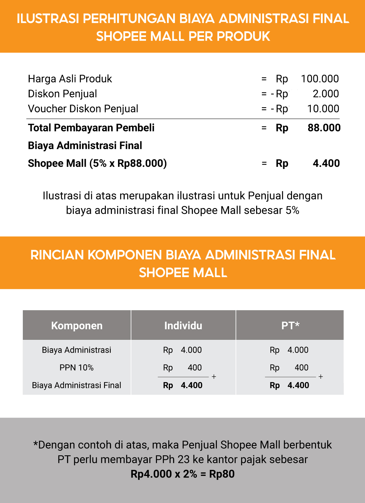 Biaya layanan ini belum termasuk biaya admin shopee mall yang tergantung kategori produk & layanan program gratis ongkir xtra. Biaya yang harus dibayar juga belum termasuk biaya layanan shopee program gratis ongkir serta tidak ada maksimum biaya admin per kuantitas produknya. Berikut ini ilustrasi dengan biaya admin shopee mall sebesar 1%: 17/07/2021 · biaya admin shopee mall saat ini sebesar 1%, 3% atau 5% tergantung dari kategori produknya. Berikut ini rincian biaya administrasi layanan di shopee.